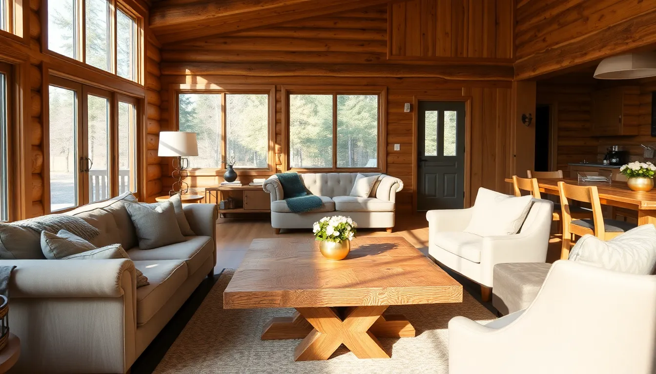 Cabin interiors blend rustic charm with modern comfort, creating warm and inviting spaces. Each design element plays a role in enhancing the overall atmosphere.